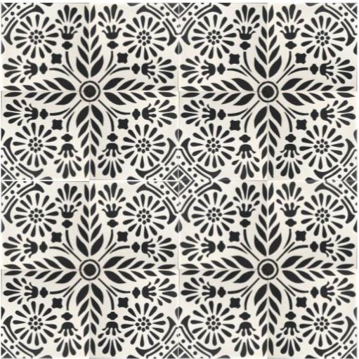 Our handmade cement tile, pictured, is in stock and ready to ship at unpreceded prices. The tiles have companions that can be mixed and matched to create your perfect installations.
